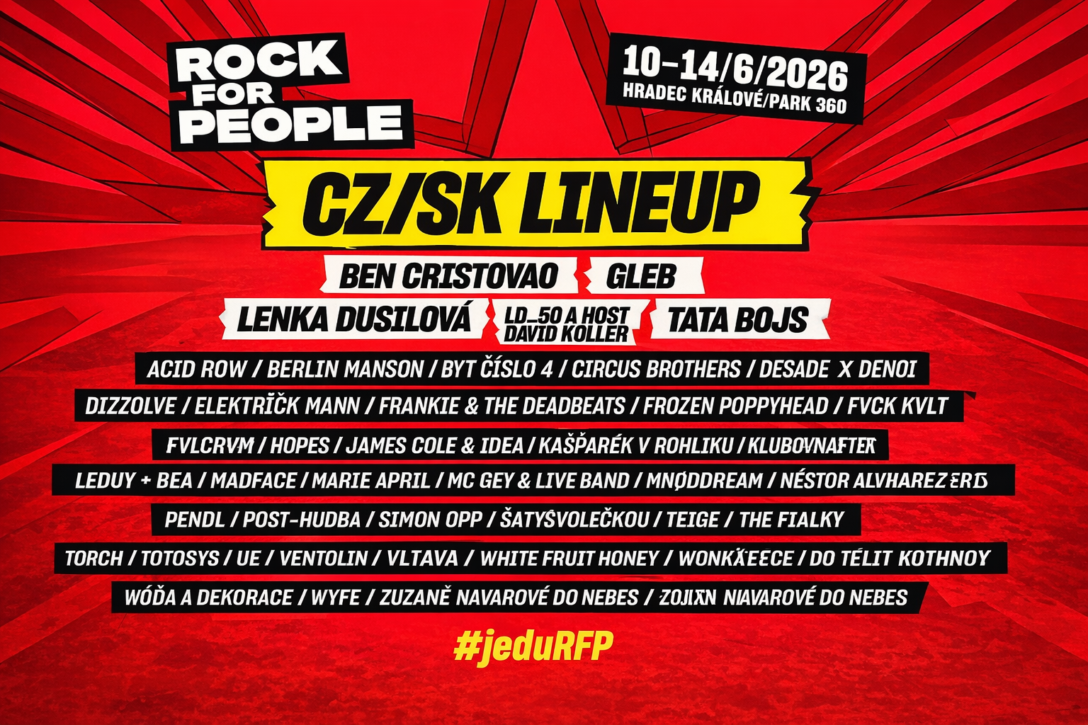 CZ/SK LINEUP NA ROCK FOR PEOPLE 2026 NABÍDNE BENA CRISTOVAO, ČERSTVÉHO DRŽITELE CEN ANDĚL JAMESE COLEA, LENKU DUSILOVOU ČI TATA BOJS.