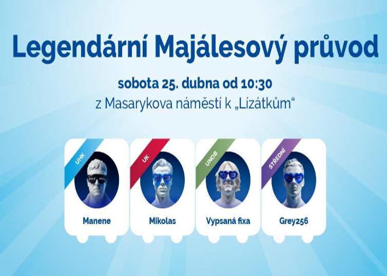 Start průvodu je v 10:30 na Masarykově náměstí, poté vyplouváme centrem Hradce směr Majáles open-air U Lízátek!