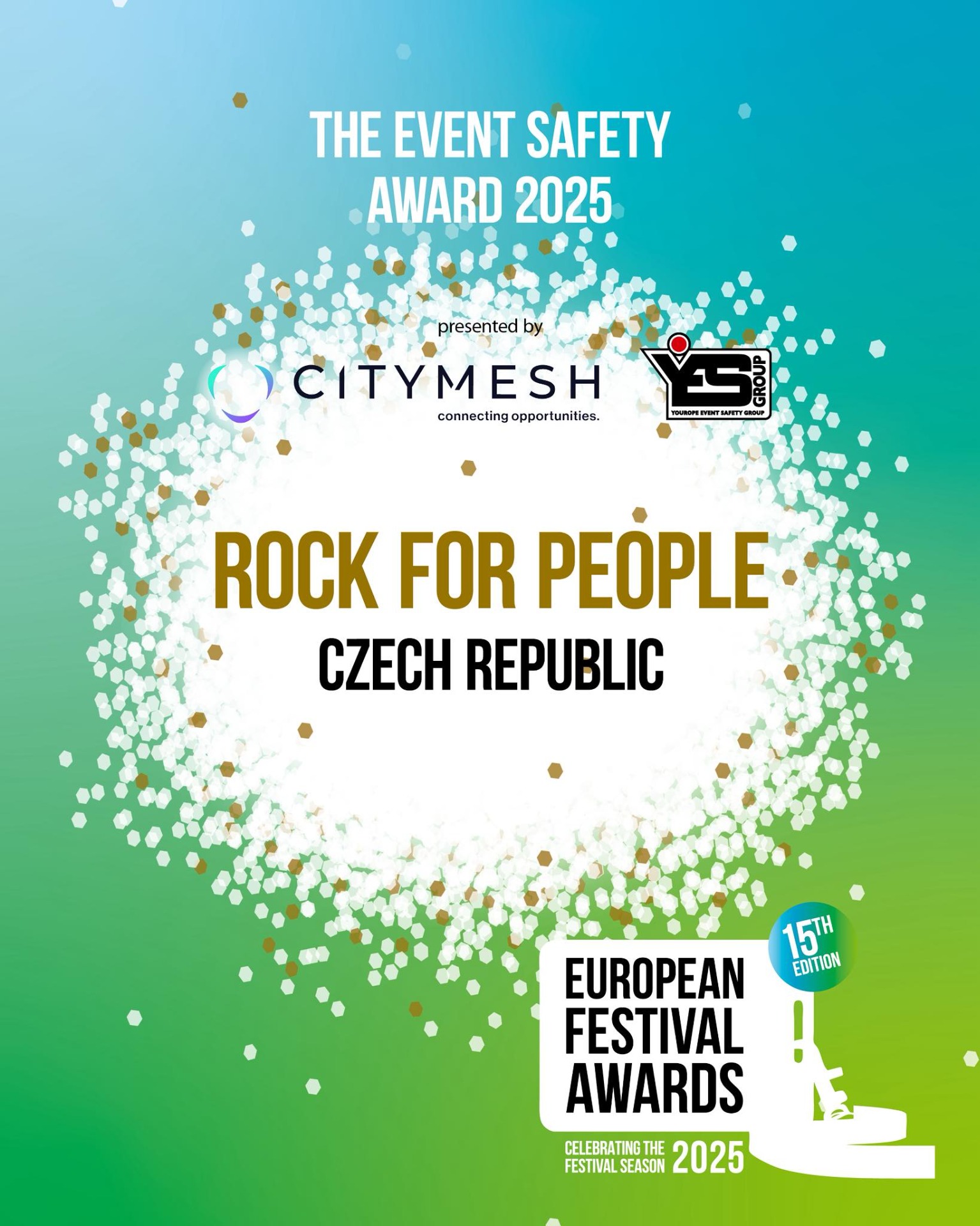 Festival Rock for People zaznamenal významný mezinárodní úspěch na prestižních European Festival Awards, odkud si odnáší ocenění v kategorii The Event Safety Award.