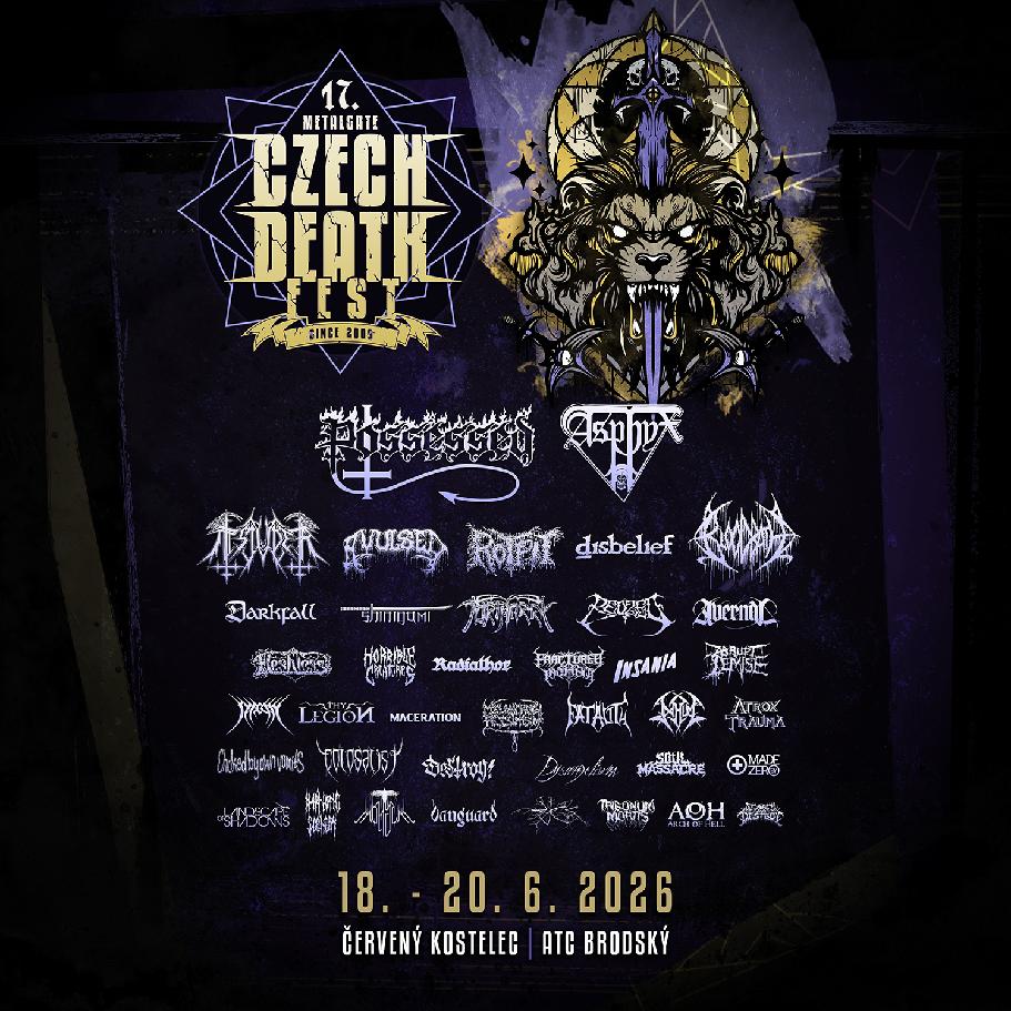 Průběžné oznamování nových kapel pro Metalgate Czech Death Fest 2026 se právě naklonilo ke svému konci. S právě oznámenými šesti kapelami je sestava festivalu, jehož soupisce dominují POSSSESSED, ASPHYX, BLOODBATH, TSJUDER, AVULSED a SARCÓFAGO, kompletní.